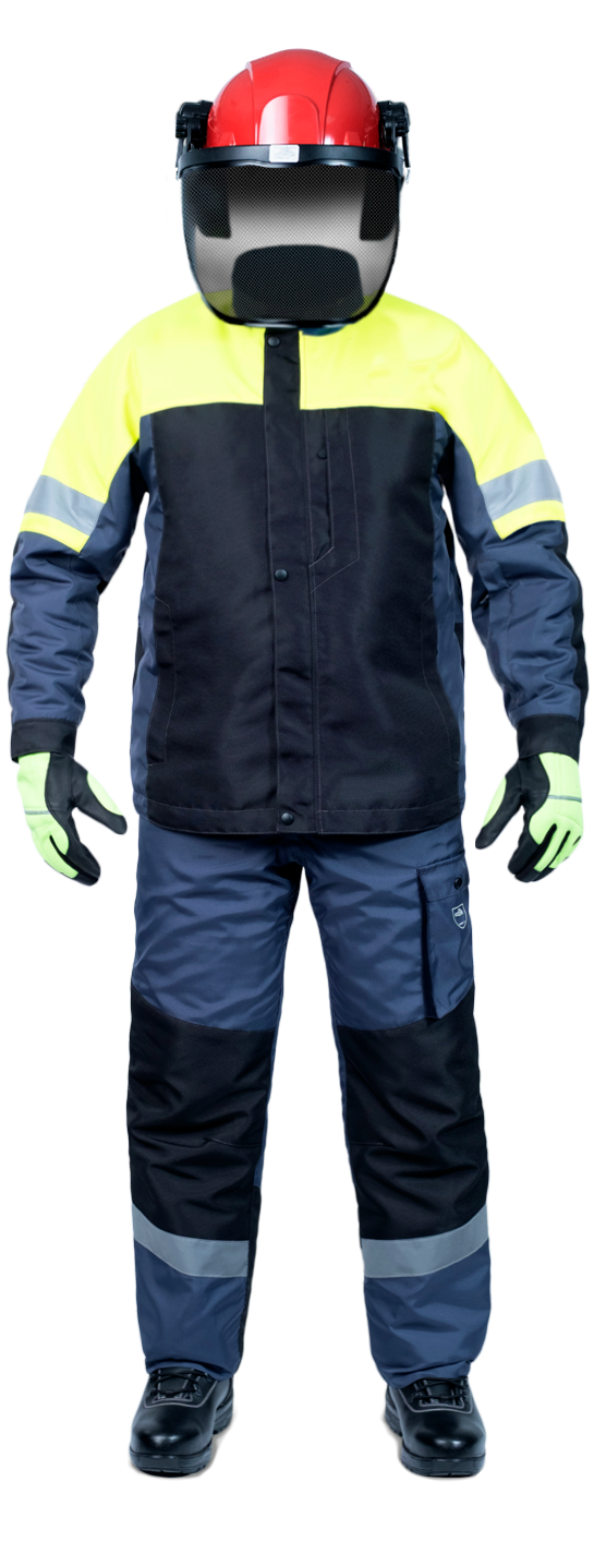 Защитные вставки – пилостойкий трикотаж, 5 слоев, изготовлен из полиэфира (48%) и заполнен полипропиленом (52%), 170г/м²